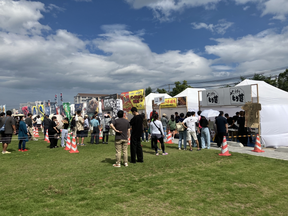 当日は全国から集まったやきとり店のブースが立ち並び、地元住民や観光客で大いに賑わいました。香ばしい炭火の香りが漂う中、笑顔と交流にあふれた活気あるイベントの様子を、設営を担った私たちも現地で肌で感じることができました。